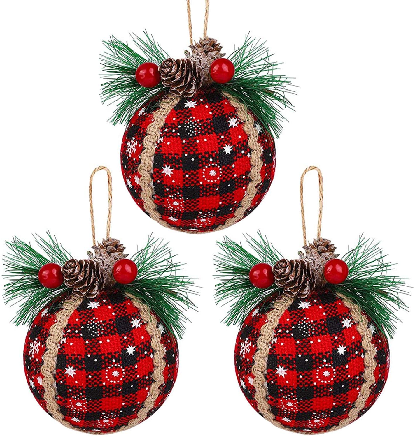 Tingor 3pcs Christmas Plaid Ball Ornaments 3 Inch Black Red Buffalo Plaid Fabric Ball Ornaments With Pine Cones And Greenery Plaid Christmas Tree Hanging Ball Ornaments Festive Decorations Walmart Com